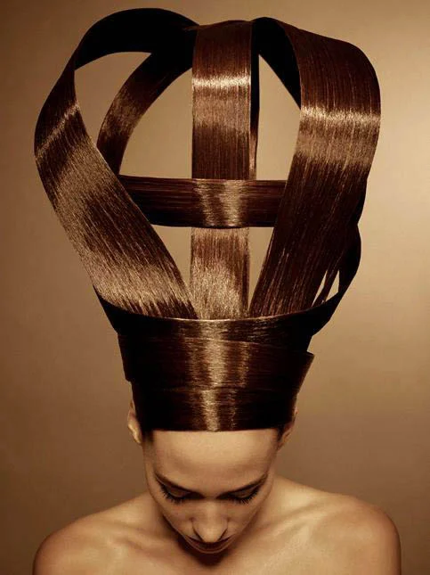 With Niemeyer’s buildings in mind, I created hair sculptures to celebrate architectural style : arches, bridges, cathedrals, vertical and horizontal lines, planes of perspective, volume and empty space – and importantly to have fun with the creative process, the adventure, to see what I could discover and where I could go with it.