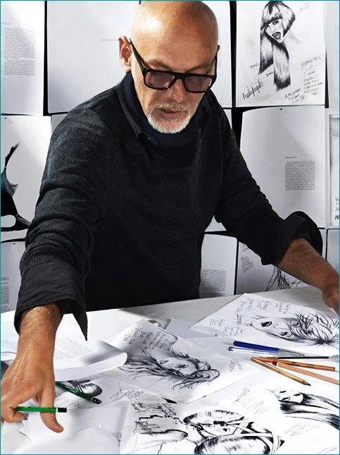 True, I have been fortunate in my career, I have worked with many visionary people. Back in the 1990s and early 2000s, often referred to as the ‘golden era of fashion’, fashion shows had a different purpose, they were spectaculars to showcase creativity in the fashion industry, larger than life they were fashioned to awe and were often kept secret until the day of the show. In the past, designers demanded unique and stunning. Three designers (and there were many I was honored to work with) that come directly to mind are Alexander McQueen, John Galliano, and Jean-Paul Gaultier, all pushed hard for exclusive hairstyles. Some of the styles for Givenchy by Alexander McQueen demanded a massive amount of preparation, 4 weeks and a large team of dedicated, skilled assistants working long hours in my atelier before the day of the show. The demands I most often heard were “I want the absolute best of you, the best hair ever in every way, stunning, memorable, never seen on a runway before my show, there are no limits”. Some days I left the designers studio with hundreds of pages of references, not hair references, but references such as Godzilla, monster trucks, pieces of fabric, travel photos from around the world, or just a string of emotive words. The initial phase of my work was to sketch ideas for hairstyles that embraced and transmitted these ‘ideas’ before working on producing and realizing them. It was fantastic. I loved the challenge and being part of that incredible explosion of creativity
